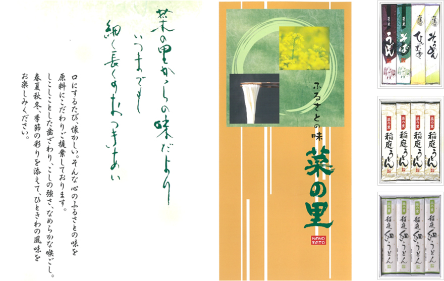 小麦粉を知りつくした千葉製粉が自信をもってお届けする菜の里シリーズ。極上のつるつる感、なめらかな喉越しが特長です。